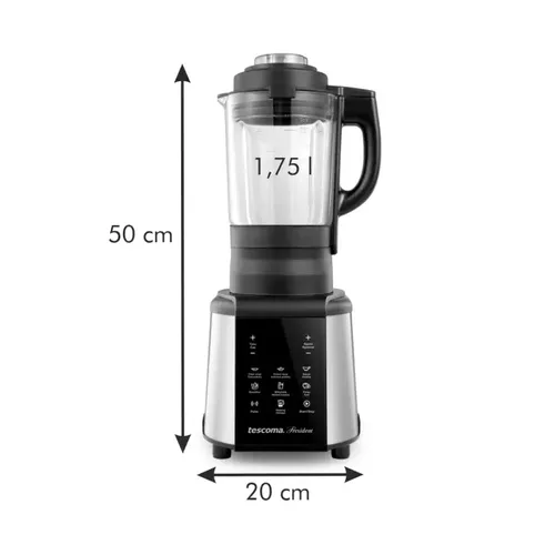 Non un semplice frullatore ma un vero e proprio robot da cucina con tanto di programmi per preparazioni diverse: brodo, zuppa, salse o puree di verdure, ma anche frullati e frappé, sarà il tuo insostituibile aiutante in cucina. Ha il boccale in vetro bello robusto e le lame in acciaio che frullano senza fatica tutti gli ingredienti. Ha programmi per la cottura e per riscaldare le pietanze, e ha anche la funzione pulse, importantissima per amalgamare al meglio gli ingredienti. Fra gli accessori ha una pressa che ti aiuta a frullare e un misurino, per dosare con precisione. Ha anche in dotazione una spazzola per la pulizia, è facile da smontare e quindi si pulisce senza fatica. Insieme alle istruzioni trovi un mini ricettario con idee per zuppe, salse, smoothies e frappé.|Parametri tecnici:|Capacità del boccale: 1750 ml|Voltaggio: 220-240 V ~|Frequenza: 50-60 Hz|Potenza di riscaldamento: 800-950 W|Max potenza assorbita dal robot: 1500 W|Tipo di presa: incorporata, tipo Schuko